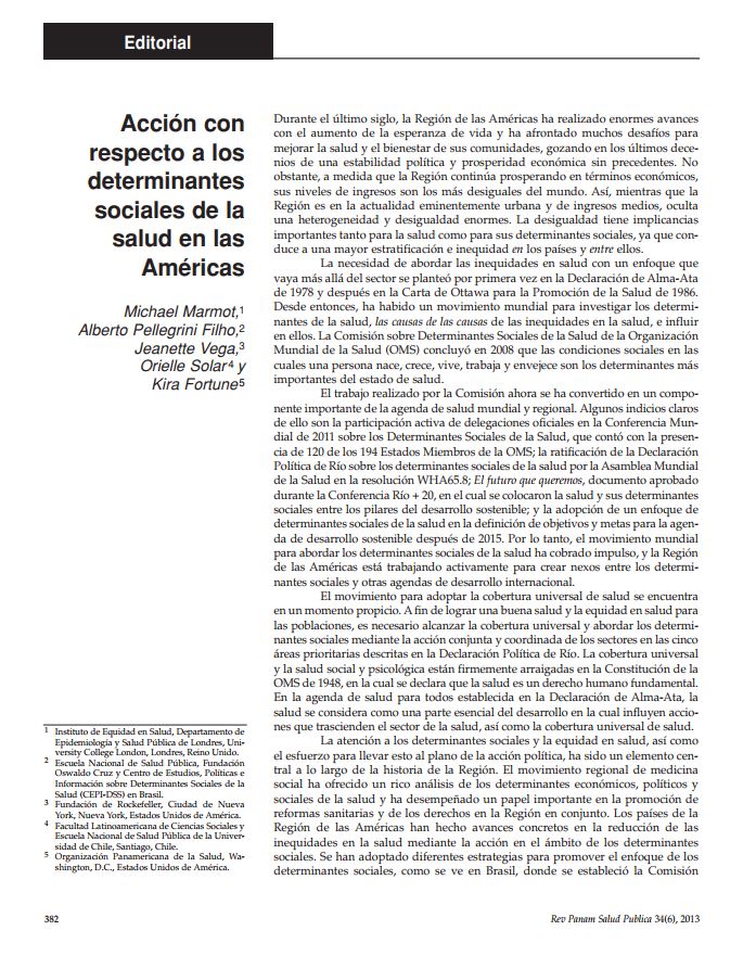 Acción con respecto a los determinantes sociales de la salud en las Américas