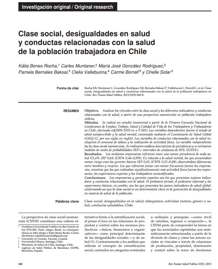 Clase social, desigualdades en salud y conductas relacionadas con la salud de la población trabajadora en Chile