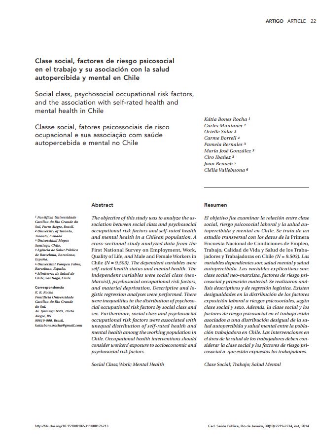 Clase social, factores de riesgo psicosocial en el trabajo y su asociación con la salud autopercibida y mental en Chile